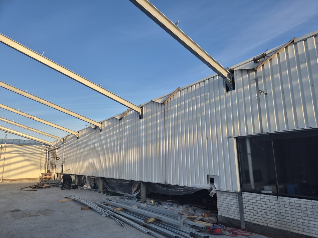 Met de staalconstructie gereed is de volgende fase gestart: de hoofdaannemer verzorgt de verdere afbouw, waaronder de plaatsing van sandwichpanelen en de realisatie van het interieur.